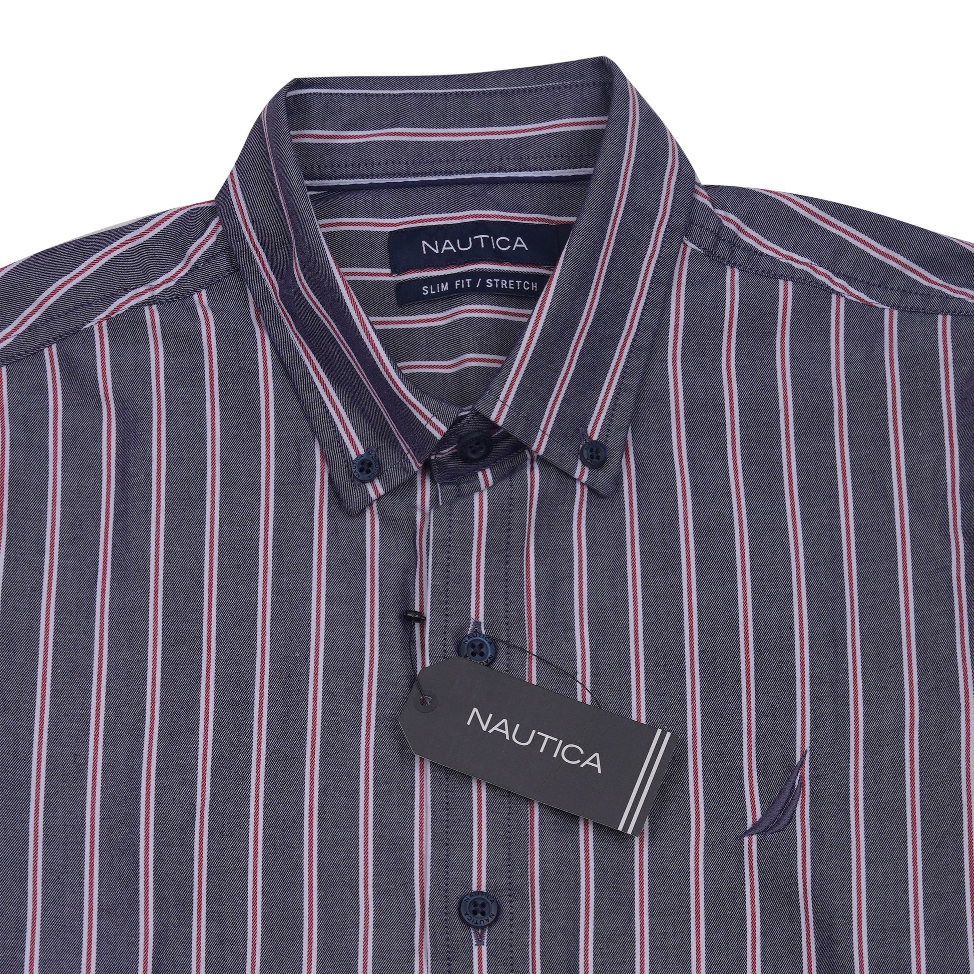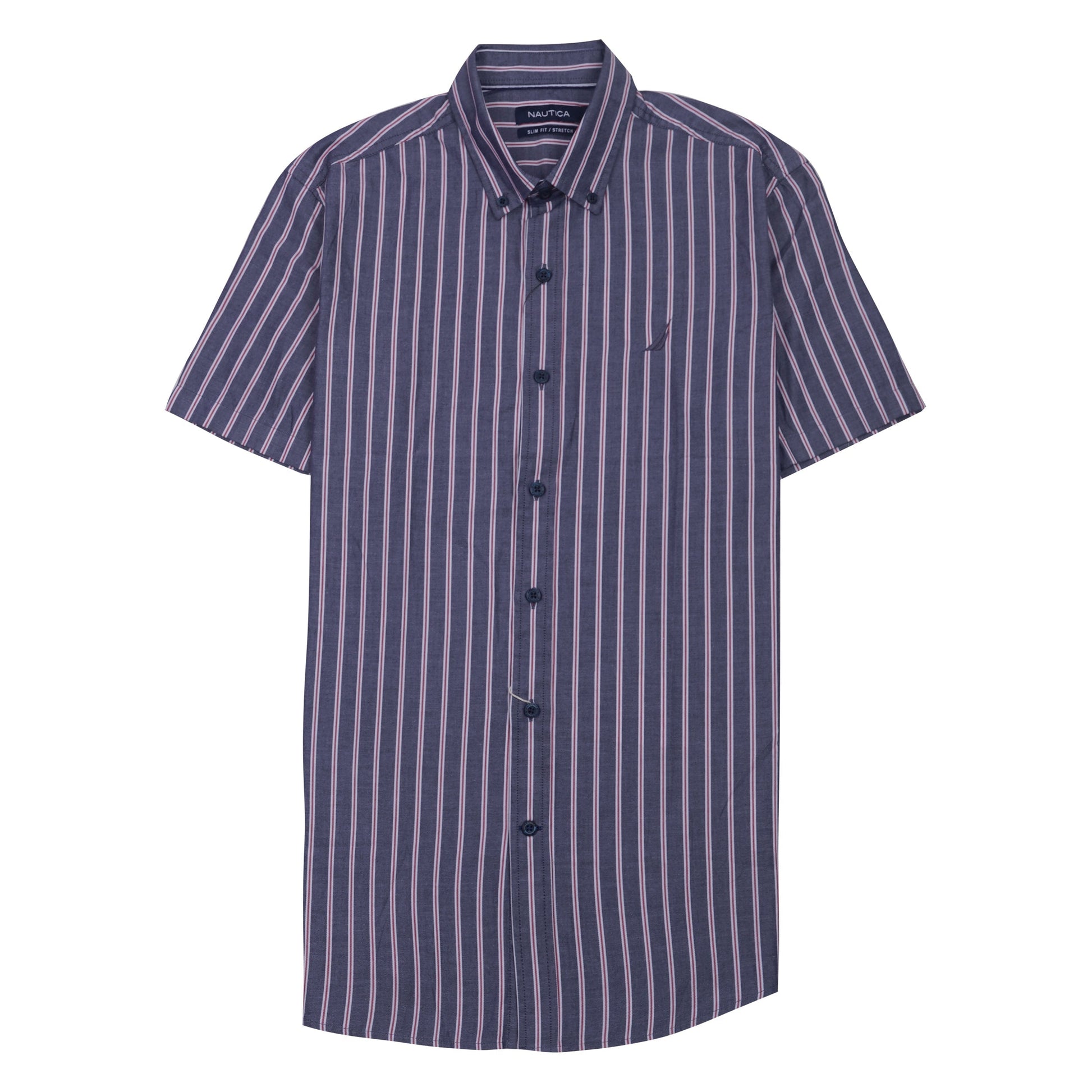 NAUTICA Prismatic Indigo Tailored Fit Short Sleeve Striped Shirt