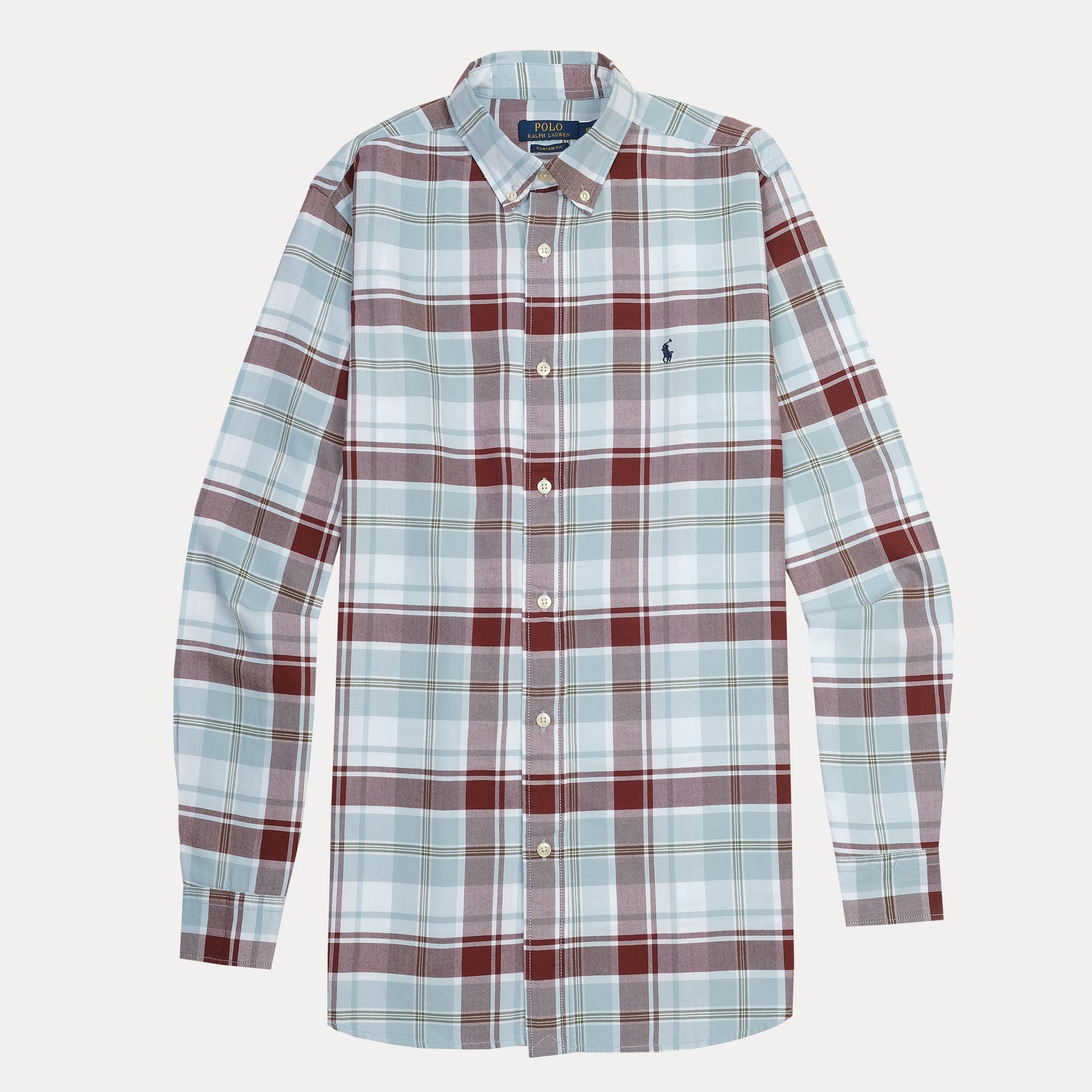 Polo Ralph Lauren Custom Fit Plaid Shirt in Serene Sky and Rustic Red