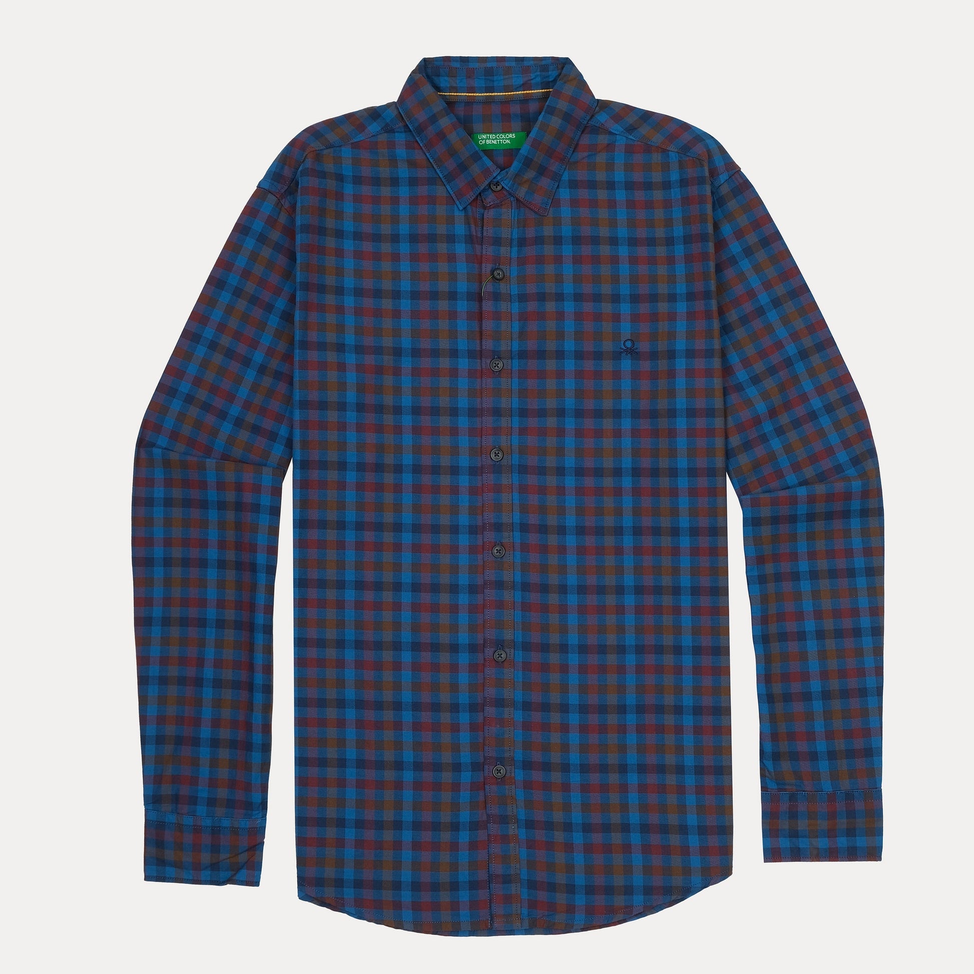 United Colors of Benetton Vibrant Plaid Long Sleeve Shirt in Oceanic Blue & Rustic Red
